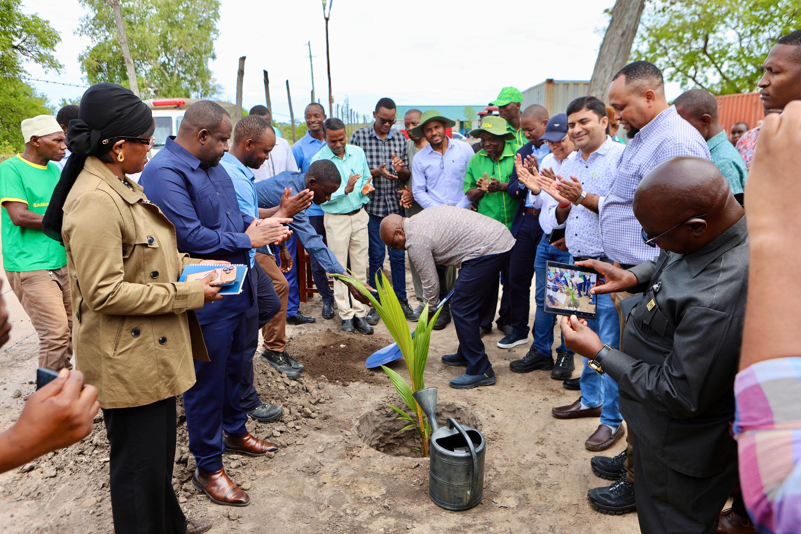 ☝️Minister of State in the President’s Office, Planning and Investment, Prof. Kitila Mkumbo (top photo) and Secretary General, President’s Office, Planning and Investments, Dr. Fred Msemwa, (below) plant trees at the offices of Ego Agro Tech TZ, a company that starts sugarcane farming and produces sugar, ethnol, and electricity, at Mkulazi village, Morogoro region.👇